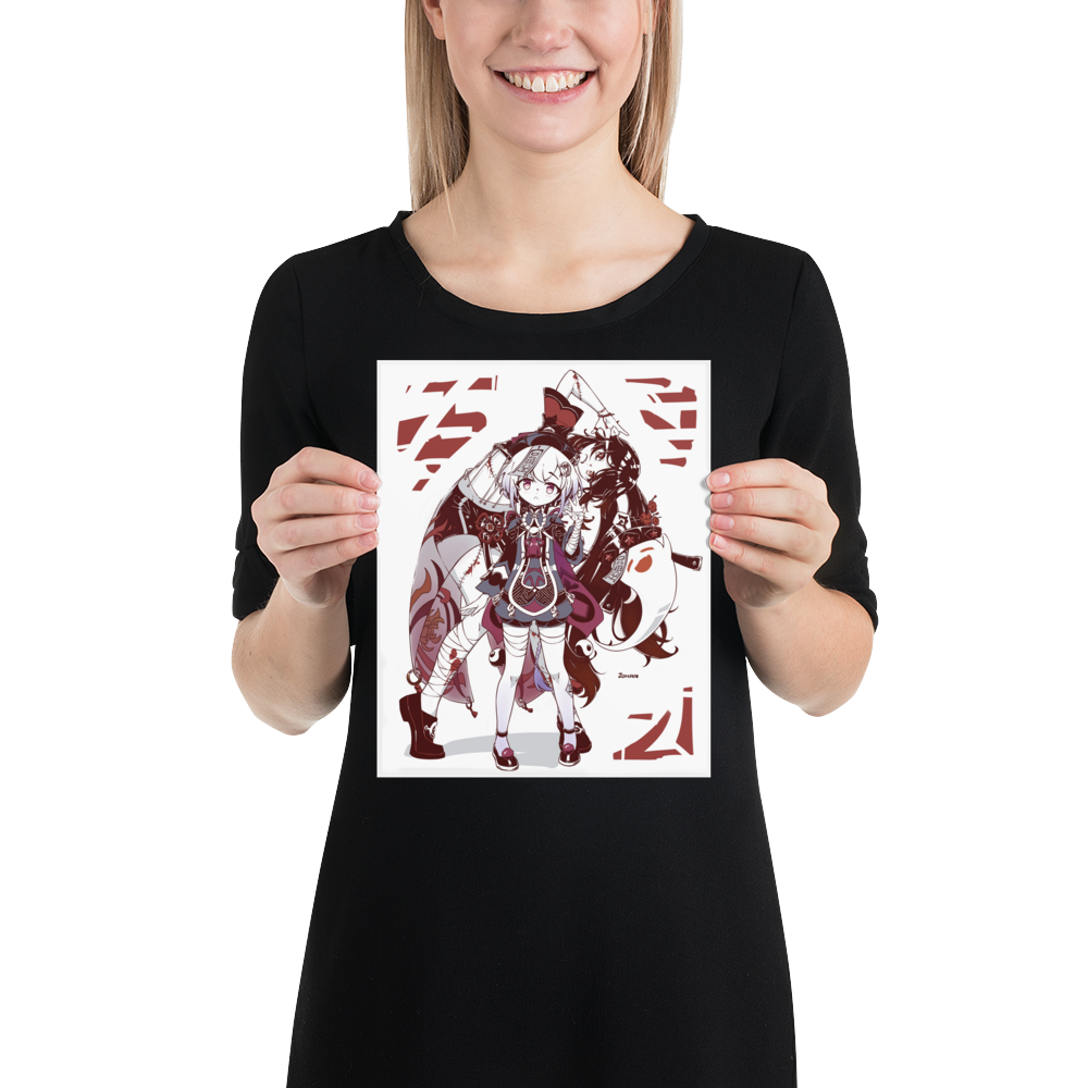 A 8" x 10" (20.32 x 25.4 cm) sized print on museum-quality posters made of thick matte paper. Each poster is printed with multicolor, water-based inkjet printing technique that yields brilliant prints.